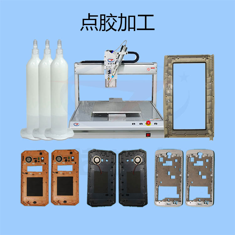 熱壓結(jié)構(gòu)膠點(diǎn)膠加工是依序?qū)ぜM(jìn)行點(diǎn)膠、熱壓合,然后靜置工件,待使用于壓合的膠體冷卻凝固。熱壓結(jié)構(gòu)膠點(diǎn)膠加工所采用的熱壓結(jié)構(gòu)膠是一種固化或干燥后具有一定性能的一種膠黏劑,它通常以基體樹脂和其他填料組成,通過基體樹脂的粘接作用把其他輔助填料結(jié)合在一起,形成性能優(yōu)良的膠體,實(shí)現(xiàn)被粘材料的良好的連接。