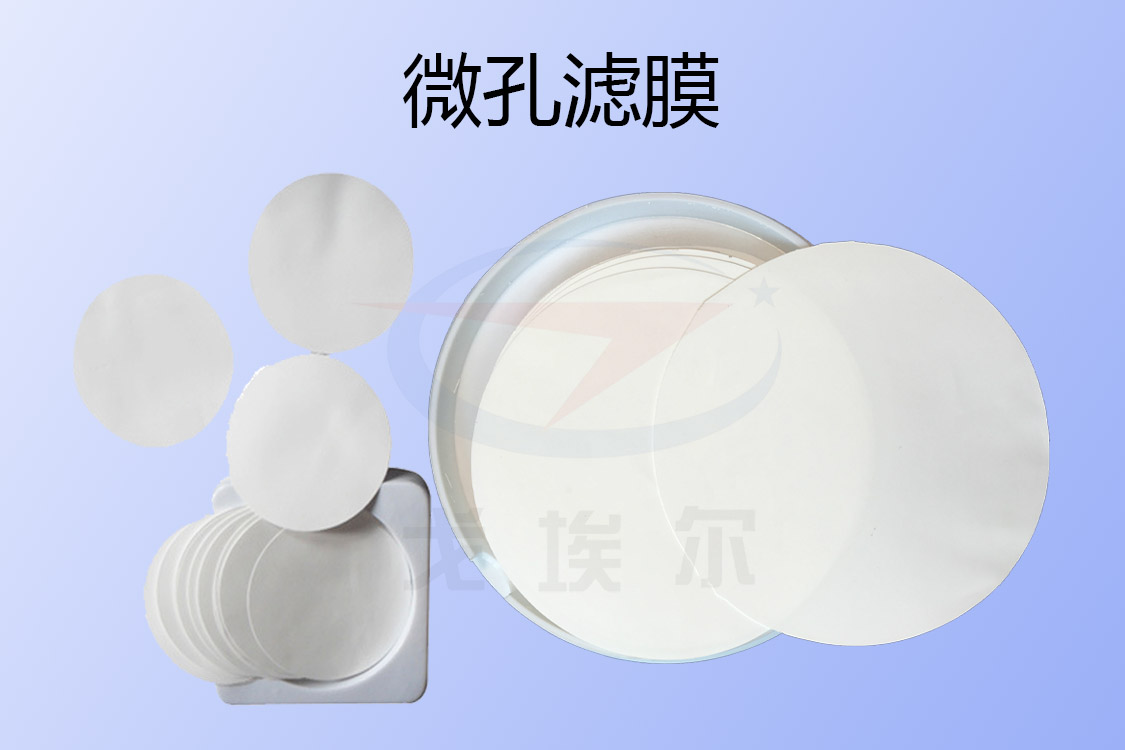 微孔濾膜基本上是用纖維素或高分子材料制成的,利用微孔濾膜上均勻分布的孔徑(孔徑根據要分離的物質去合理選擇),通過合理的孔徑大小來截留水中的微小固體顆粒與微生物等,使其不能通過微孔濾膜而被去除。決定微孔濾膜的分離效果的是膜材料的本身結構也就是孔的形狀和大小。微孔濾膜的規格目前有十多種,孔徑可以在0.1~75 μm根據要過濾的液體去選擇,膜厚在120~150μm去選擇。微孔濾膜的種類有:聚丙烯微孔濾膜、混合纖維酯微孔濾膜、醋酸纖維素濾膜、玻纖微孔濾膜、再生纖維素微孔濾膜、PTFE聚四氟乙烯濾膜以及MCE微孔濾膜等。