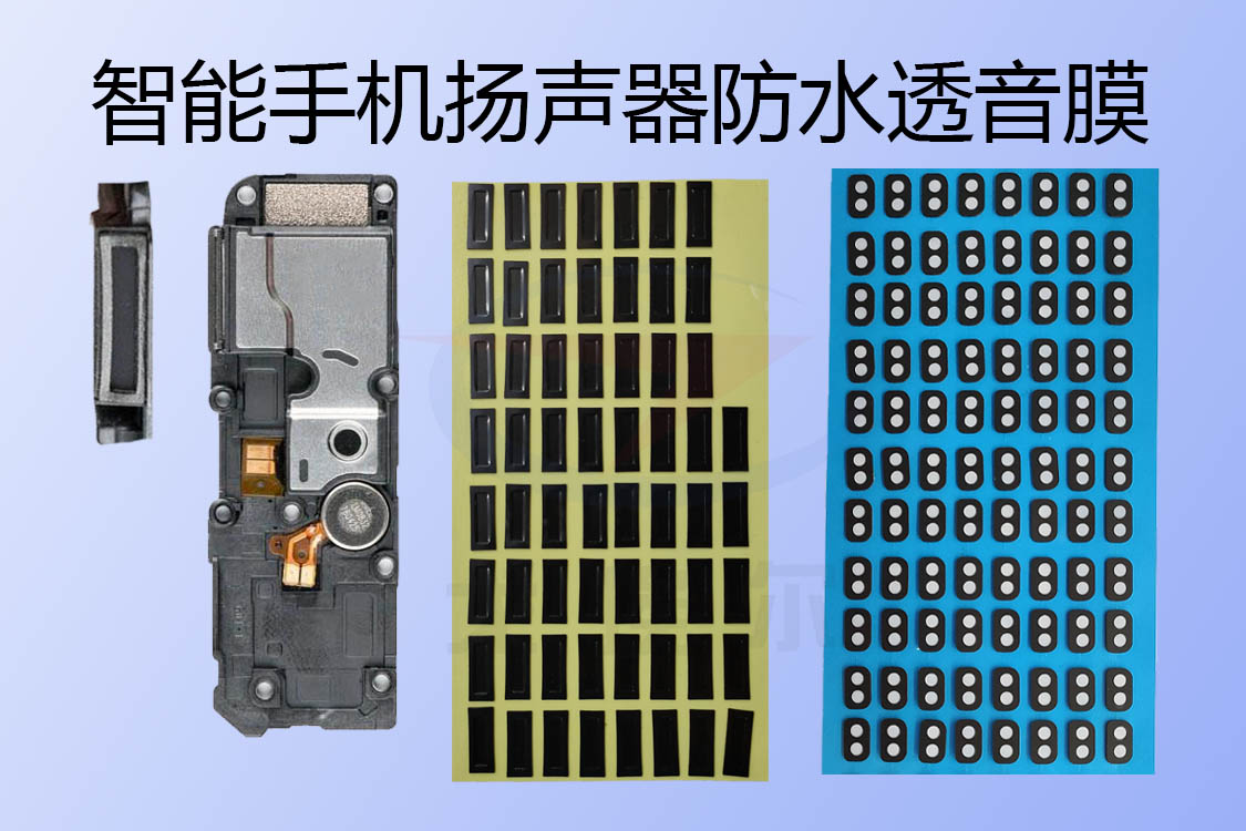 智能手機揚聲器現在的防水工藝越來越成熟,現在也出現了防水喇叭,再配合防水密封圈就可以很好的實現手機防水;也有揚聲器采用泡棉加上防水透音膜再加上防水泡棉來實現揚聲器處的防水,智能手機揚聲器防水透音膜主要是由eptfe微孔薄膜與黑色PET經過多種加工工藝結合在一起而形成的防水通音膜貼片,智能手機揚聲器防水透音膜是粘結在智能手機中框上的透聲孔處,可以實現防水作用,以及主要的通音透聲的作用,保證聲音音質不會受到影響,e-PTFE材料的智能手機揚聲器防水透音膜還具有具有一定的透氣泄壓能力。