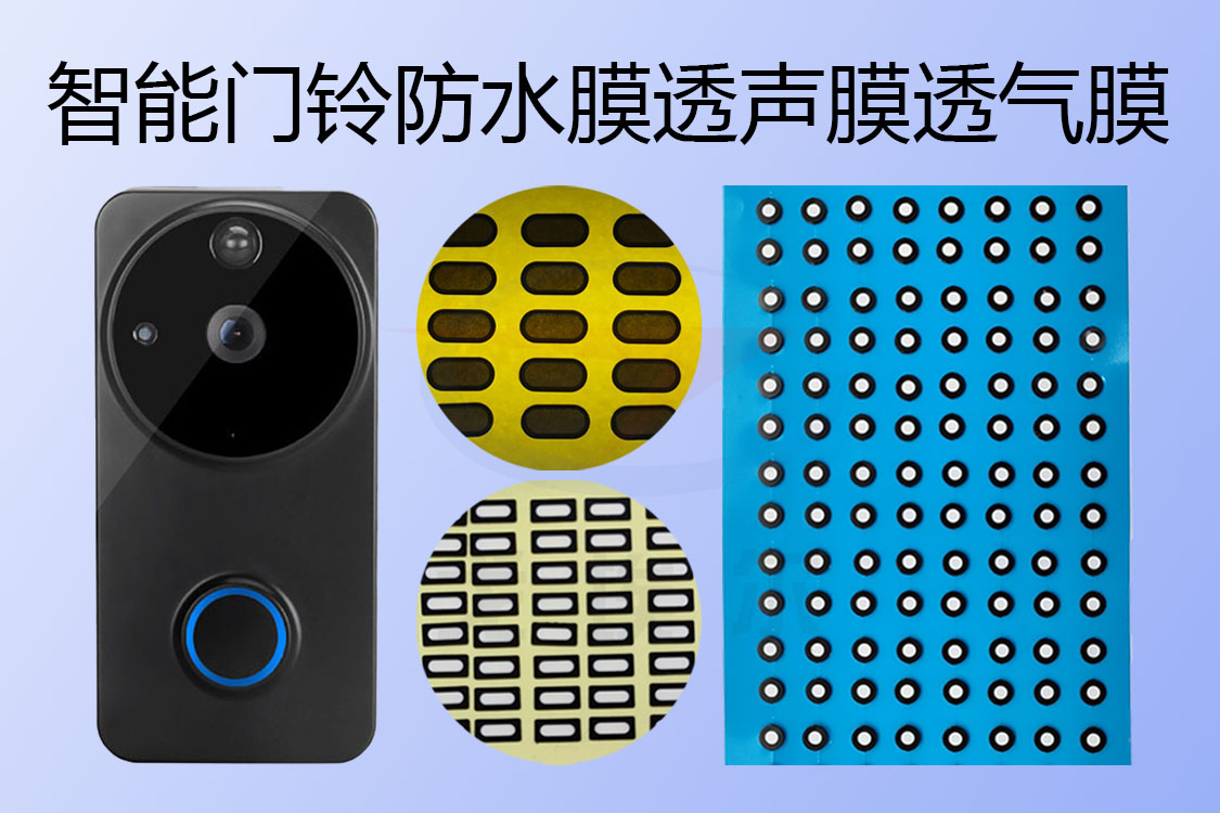對于透聲孔是使用智能門鈴防水膜來實現(xiàn)電聲器件孔位的防水與透聲,這是兩個智能門鈴防水膜產(chǎn)品的應(yīng)用位置,智能門鈴防水膜在喇叭孔上就是喇叭防水膜了,智能門鈴在MIC孔上就是MIC防水膜了,應(yīng)用在智能門鈴?fù)嘎暱咨喜徽撌抢确浪ず蚆IC防水膜,都要在保證透聲性能的前提下做好產(chǎn)品的防水。這是在透聲孔上需要做在電聲器件透聲孔上防水的位置,還有就是用于平衡內(nèi)外氣壓的殼體透氣孔這一位置,也會用到智能門鈴防水膜(智能門鈴?fù)笟饽ぃ﹣韺崿F(xiàn)防水透氣。