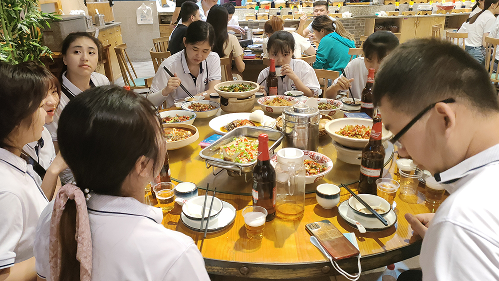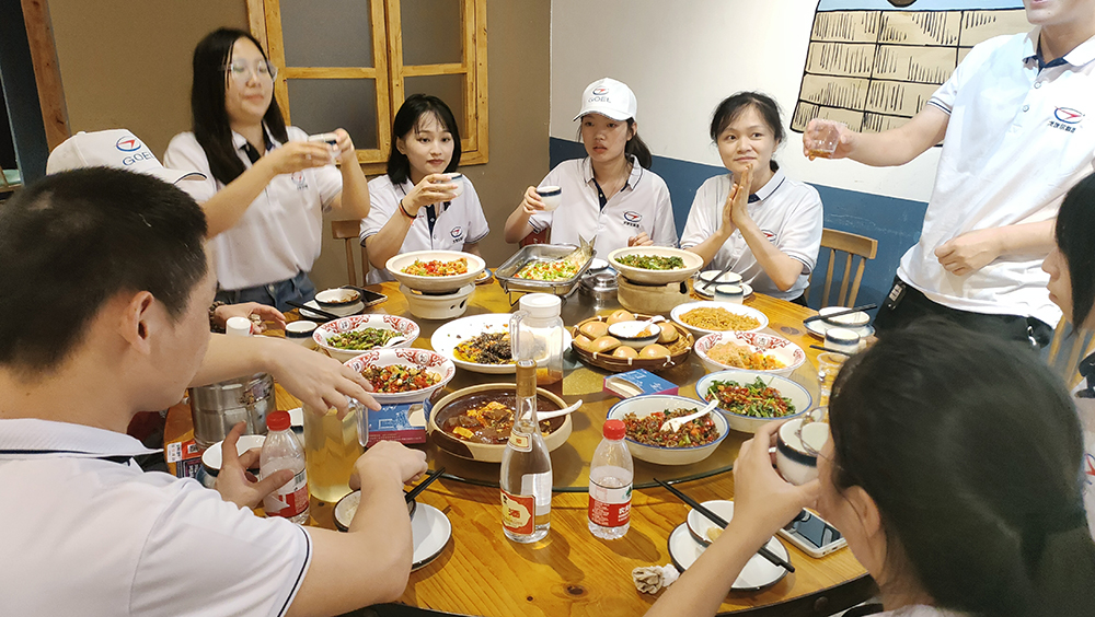 在山頂稍作休息后,大家開始結伴下山,下山的速度總是要格外的快,相比登山時的步履深沉下山的過程要輕松許多。下山之后,公司為大家準備了豐盛的晚餐。奔波一下午,面對豐盛的菜肴和勁爽的啤酒,每個人都瞬間狼吞虎咽。酒過三巡,菜過五味,大家在觥籌交錯,推杯換盞之間盡情宣泄,互訴衷腸,將爬山團建活動氣氛帶向了高潮。