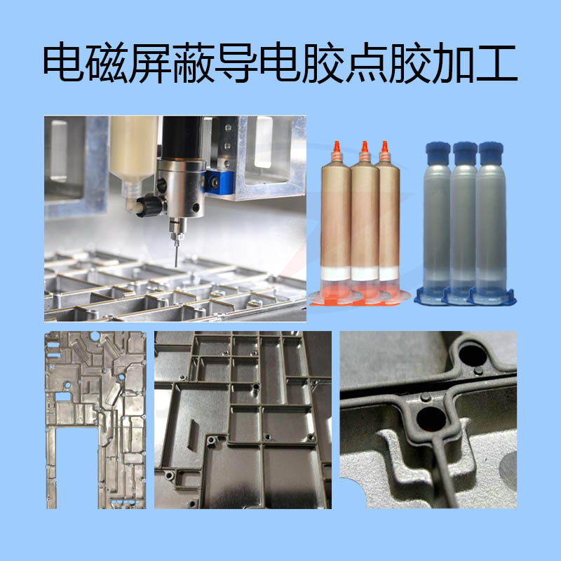 導(dǎo)電膠點膠加工是指以精確的計算機操控自動點膠機,將流體導(dǎo)電膠橡膠直接點涂在金屬或塑料的機殼表面,在一定條件產(chǎn)生固化,從而形成導(dǎo)電或不導(dǎo)電的密封襯墊,以達到EMI電磁屏蔽及環(huán)境密封效果。