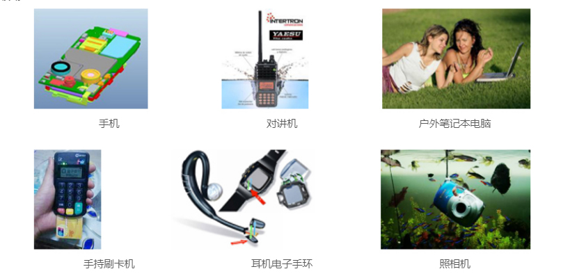 ●無(wú)線和有線耳機(jī)、車載音響或藍(lán)牙系統(tǒng)、GPS系統(tǒng)、智能手環(huán)都是近期出現(xiàn)的戶外使用的既要防水防塵又要高保真透聲的電子產(chǎn)品。
