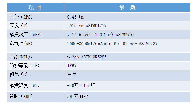 3、ePTFE 透氣膜性能參數
